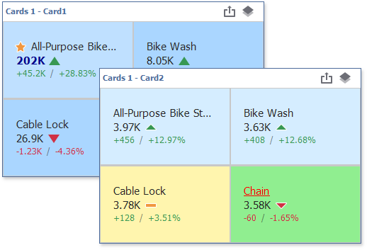 - Um eine Formatierungsregel auf eine bestimmte Karte anzuwenden, verwenden Sie Deltawerte, um die Regel zu berechnen. Die Formatbedingung expression ist eine Ausnahme von dieser Regel und gilt für alle Karten.