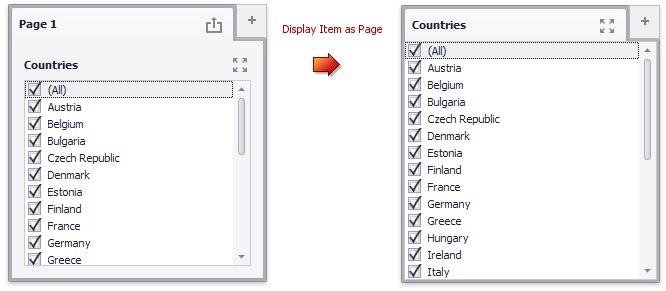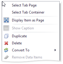 Wählen Sie die Registerkarte aus, und klicken Sie auf die Schaltfläche Element als Seite anzeigen in der Gruppe Layout auf der Registerkarte Entwurf des Kontextregisterkartensatzes Seitentools.