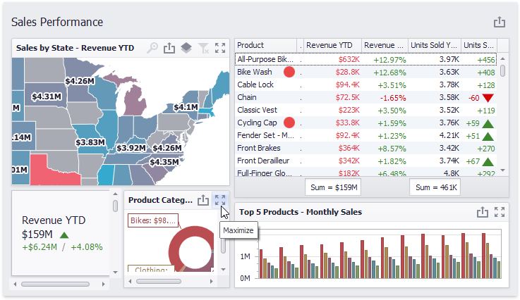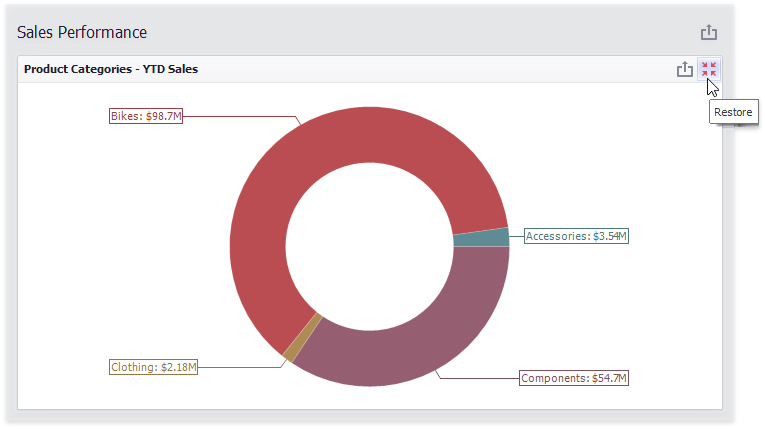 Um ein Dashboard-Element zu maximieren, klicken Sie auf die Schaltfläche Maximieren in der Dashboard-Elementbeschriftung.