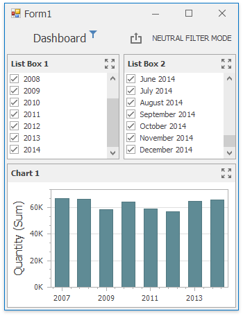 Das Dashboard in der Abbildung unten zeigt, wie die Filterelemente im Standardfiltermodus initialisiert werden.