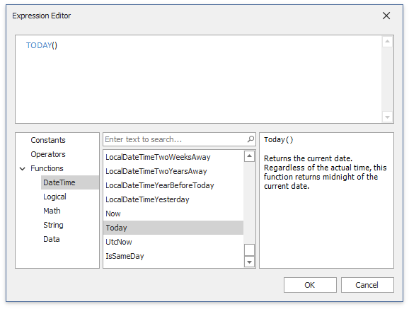 Geben Sie den Ausdruck im aufgerufenen Ausdruckseditor an, und klicken Sie auf OK.