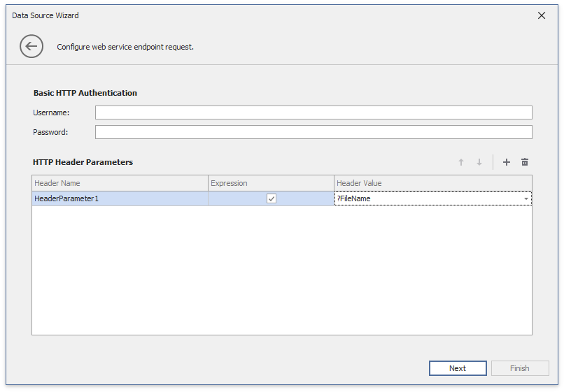 Klicken Sie auf Weiter, um grundlegende HTTP-Authentifizierungsanmeldeinformationen zu konfigurieren und HTTP-Header-Parameter anzugeben.
