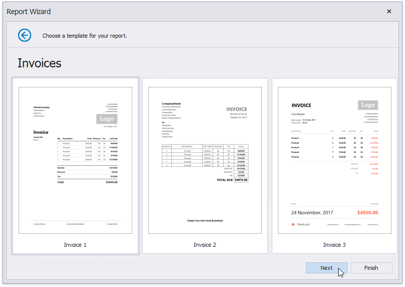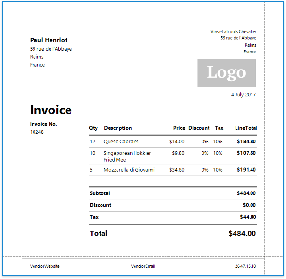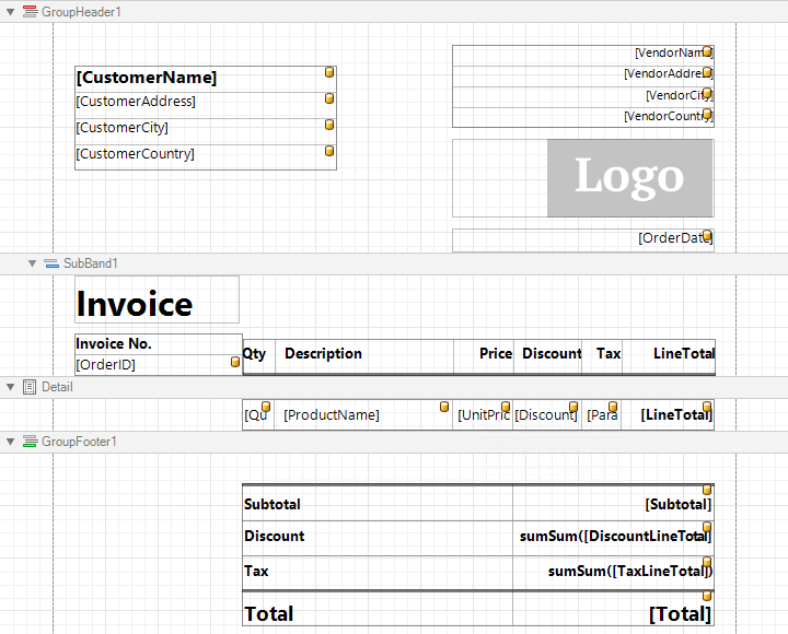 [! Anmerkung] Informationen zum Erstellen eines Rechnungsberichts mit einem benutzerdefinierten Layout von Grund auf finden Sie im Thema Invoices.