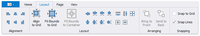 - Ausrichten von Berichtselementen zueinander oder zum Andockraster;