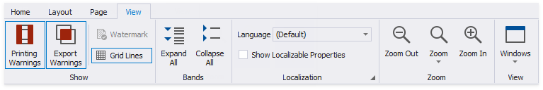 - Verwalten Sie die Sichtbarkeit der Report Designer-Bereiche.