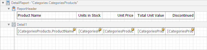 Erstellen Sie einen neuen datengebundenen Bericht, oder öffnen Sie einen vorhandenen datengebundenen Bericht. Dieses Lernprogramm beginnt mit dem folgenden Berichtslayout: