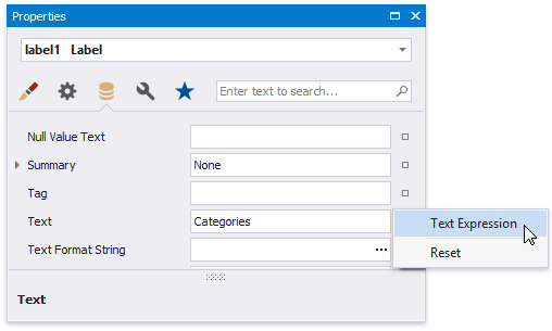 Klicken Sie auf eine Eigenschaftenmarke, um zu sehen, ob das aufgerufene Kontextmenü das Element PropertyName Expression** enthält.