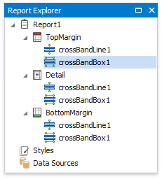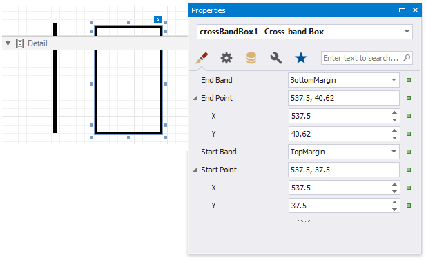 - Das Steuerelement Cross-Band Box zeichnet Rechtecke durch mehrere Berichtsbänder. Sie können dieses Steuerelement verwenden, um einen Berichtsabschnitt zu umfassen, der mehrere Bandbereiche enthält.