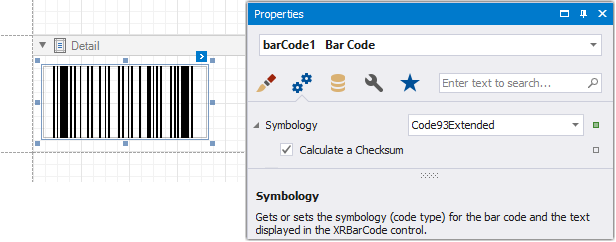 Erweitern Sie im Eigenschaftsraster die Liste Symbologie und geben Sie die folgende Eigenschaft spezifisch für Code 93 an: