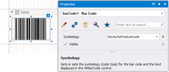 Legen Sie die Symbology-Eigenschaft des Steuerelements auf DeutschePostLeitcode fest.
