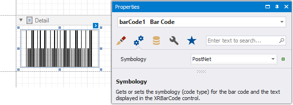 Legen Sie die Symbologie-Eigenschaft des Steuerelements auf PostNet fest.