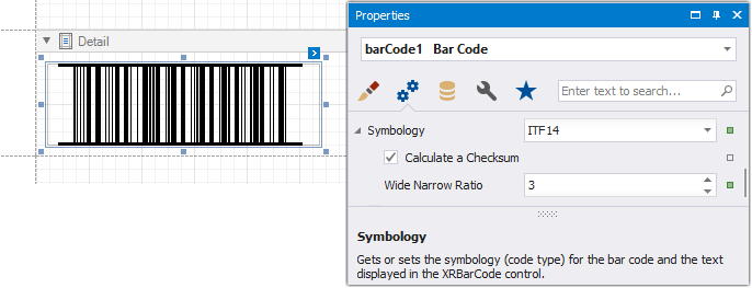 Legen Sie die Symbologie-Eigenschaft des Steuerelements auf ITF14 fest.