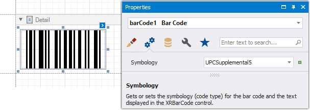 Legen Sie die Symbologie-Eigenschaft des Steuerelements auf UPCSupplemental5 fest.