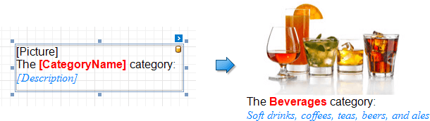 In diesem Thema wird beschrieben, wie Daten für Berichtssteuerelemente mithilfe der erweiterten Seriendruck-Bindungsmethode bereitgestellt werden. Mit diesem Feature können Sie Vorlagen erstellen, in denen Datenquellenwerte bestimmte Felder auffüllen, während anderer Text konstant bleibt (d. h., Sie können statischen und dynamischen Inhalt innerhalb desselben Steuerelements kombinieren).