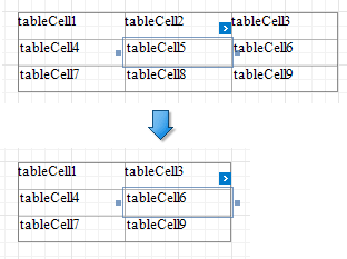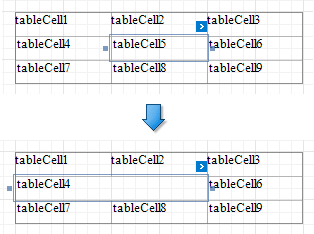 Löscht eine Tabellenzelle und dehnt die vorherige Zelle, um den verbleibenden Platz zu belegen. Wenn diese Zelle die erste in der Zeile ist, wird die nächste Zelle gestreckt.