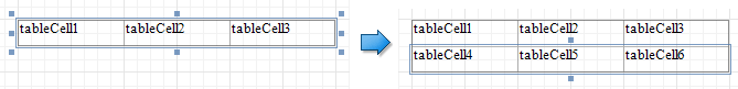 Fügt eine Zeile unterhalb der aktuellen Zelle ein und verschiebt die vorhandenen Zeilen nach unten. Dieser Befehl erhöht die Bandhöhe, um alle Zeilen unterzubringen, wenn unter der Tabelle nicht genügend Platz vorhanden ist.
