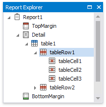 Das Tabellensteuerelement enthält eine oder mehrere Zeilen. Jede Zeile enthält eine oder mehrere Zellen. Ein Beispiel für eine Tabellenstruktur finden Sie im Berichts-Explorer.