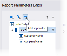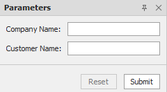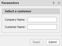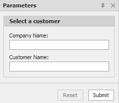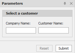 Das folgende Beispiel zeigt das Bedienfeld "Parameter" mit einem Trennzeichen zwischen den Parametern "Firmenname" und "Kundenname".