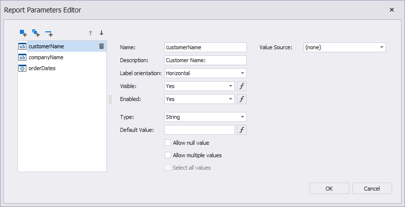 Verwenden des Berichtsparameter-Editors
