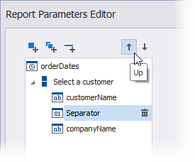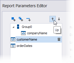 Verwenden Sie die Schaltflächen Nach oben und Nach unten, um die Reihenfolge der Parameter und Gruppen zu ändern und Parameter innerhalb oder außerhalb einer Gruppe zu platzieren.
