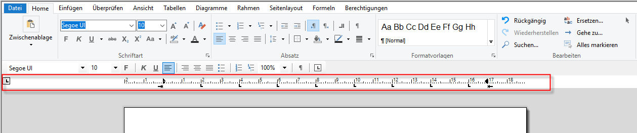 Das horizontale Lineal dient nicht nur der Orientierung. Sie können damit auch Seitenränder und den Einzug für einen Absatz festlegen. Außerdem hilft Ihnen das Lineal, Tabstopps im Text zu setzen und den genauen Abstand zwischen den Wörtern festzulegen.