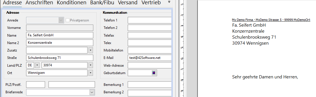 Navigation: Textverarbeitung > Howto > Adressen und Anrede > Kunde > Adresse