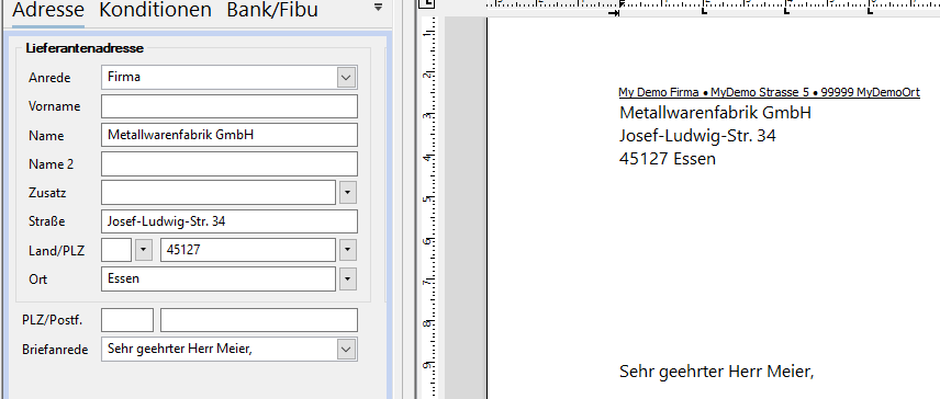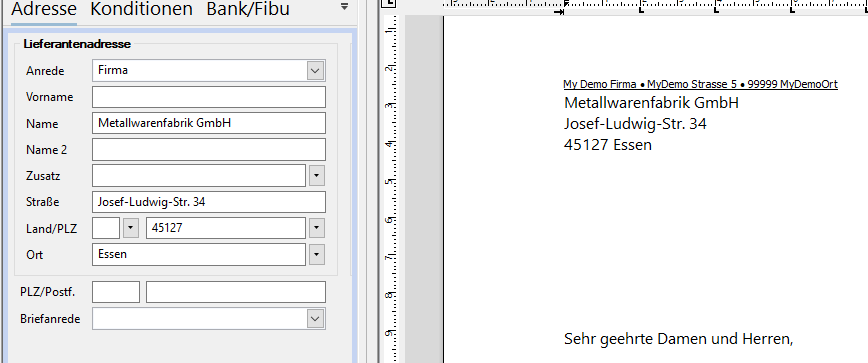 Navigation: Textverarbeitung > Howto > Adressen und Anrede > Lieferant > Adresse