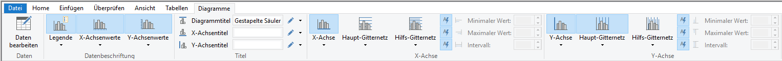 Auf der Registerkarte Chartformatierung können Sie die Daten des eingefügten Charts bearbeiten. Auf dieser Registerkarte finden Sie Layout- und Formatierungsfunktionen um ein Chart nach Ihren individuellen Bedürfnissen zu gestalten.