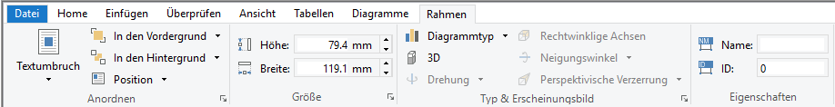 In der Registerkarte Rahmenformatierung können Sie Eigenschaften von eingefügten Charts ändern.