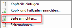 •Im Kontextmenü für Kopf- bzw. Fußzeilen über den Menüpunkt Seite einrichten