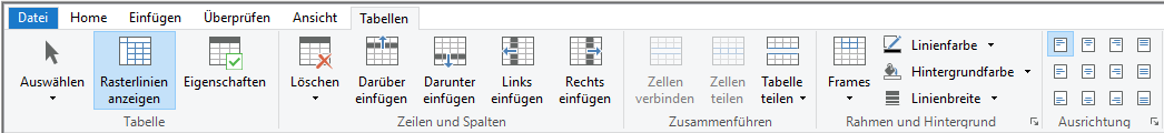 In diesem Register können Sie die Bearbeitung und Gestaltung von Tabellen vornehmen.